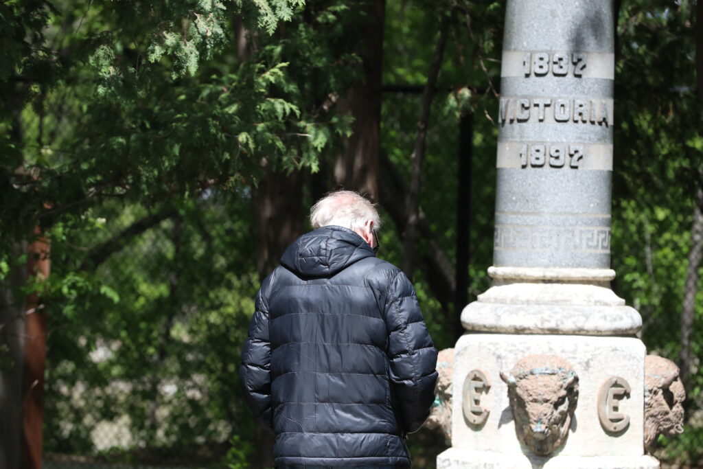 The local St. Andrew’s Society did its part to help Manitobans celebrate Victoria Day as piper Matthew Owen Hunt of the Lord Selkirk Robert Fraser Memorial Pipe Band stood close to a statue of Queen Victoria in Assiniboine Park’s English Garden.