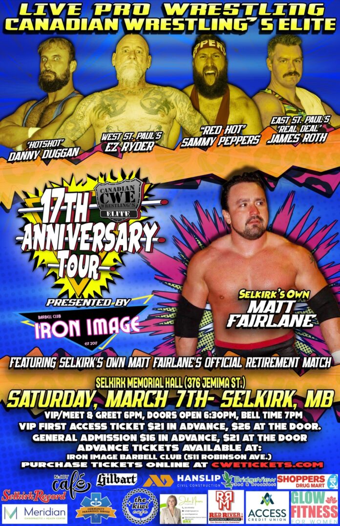Canadian Wrestling’s Elite brings live professional wrestling back to Selkirk, Manitoba for the first time in many years with a loaded card on The 17th Anniversary Tour March 7.